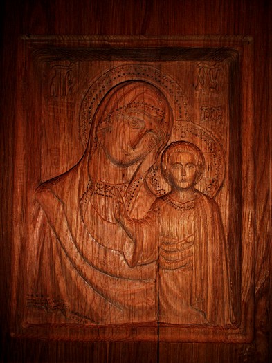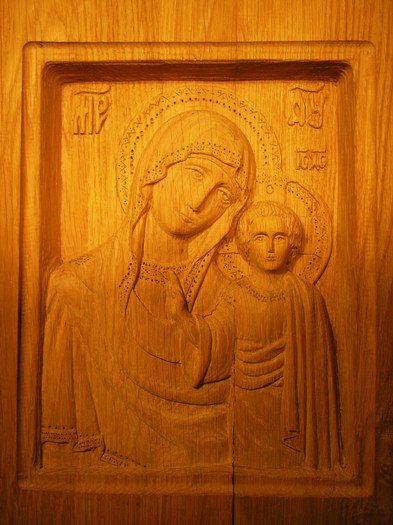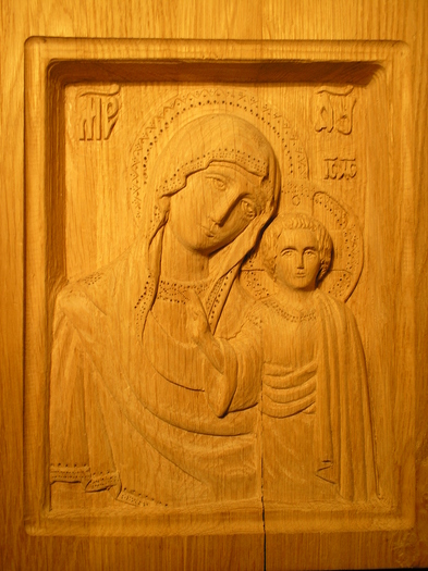 Дуб, размеры 24х19 см., заготовку получил после работы "Копира", моя задача заключалась в попытке с помощью ручной резьбы доработать икону.