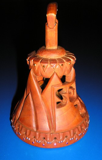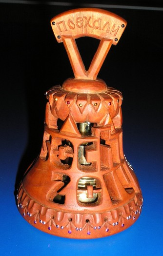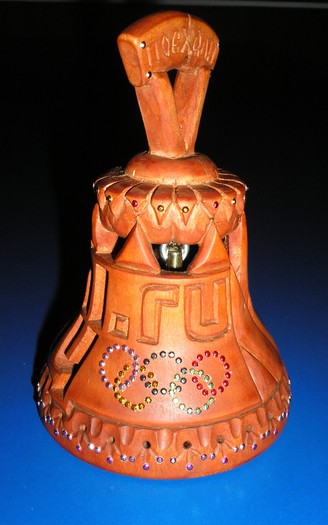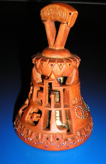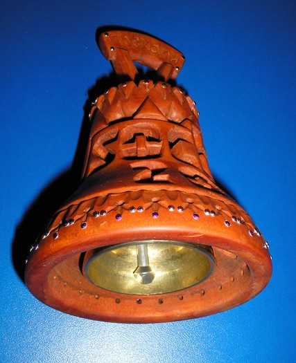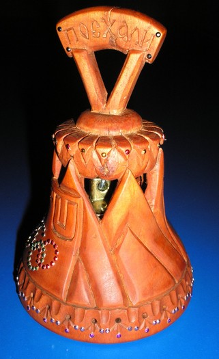 Внутри жестко закреплен звонкий металлический колокольчик,